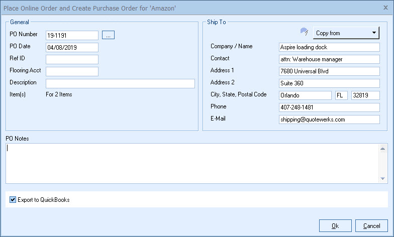 QuoteWerks integrated purchasing makes it easy to create Purchase Orders and send them directly to your Amazon Business account. You will receive an email confirmation from Amazon Business once your order has been confirmed and received by Amazon Business. You can also check your order status through your Amazon Business account.