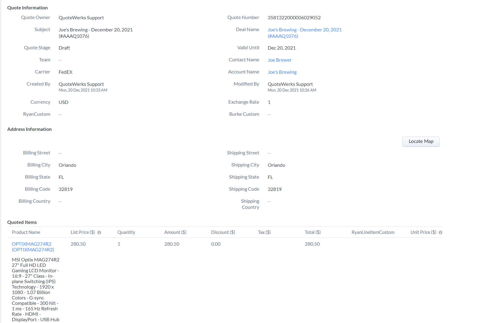 QuoteWerks Sends Line Item Detail to Zoho CRM