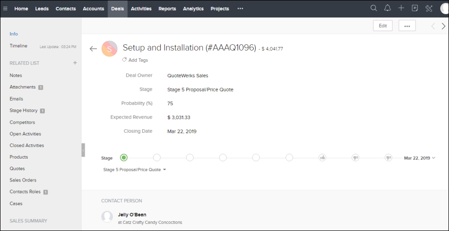 • Associate Quotes with Existing Zoho CRM Deals | QuoteWerks Web