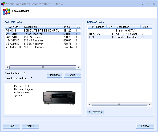 letting you select products from a list of choices at each step. For