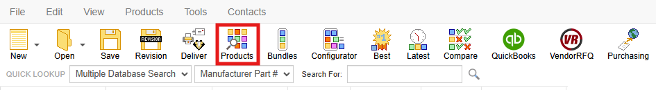 To add Pax8 items to a quote start by navigating to the Product Lookup window by clicking on the Products icon on the standard toolbar.