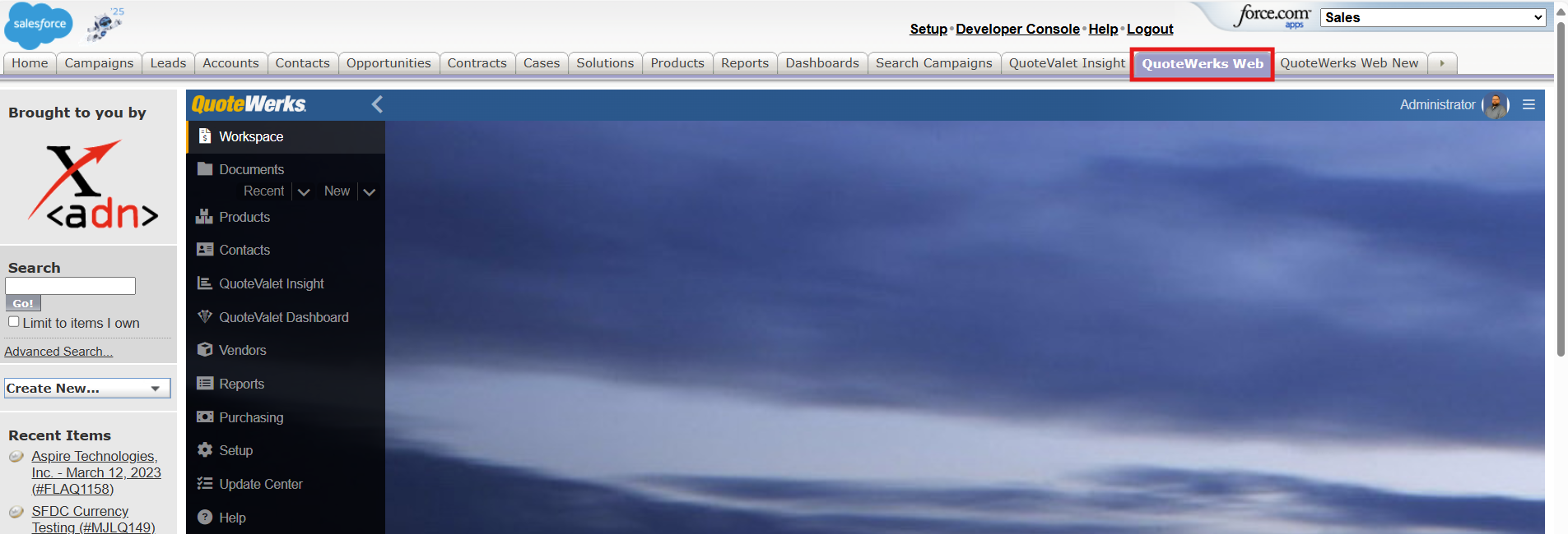 6.You should now see a new tab within salesforce.com with "QuoteWerks Web". You may need to edit your navigation panel to view it.