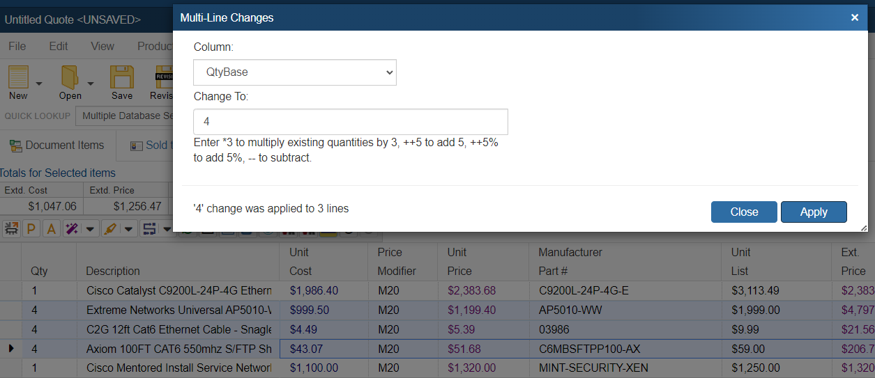Apply Quantity to Multiple Items