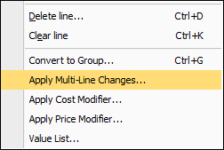 With one or more line items selected, you can select the Edit -> Apply Multi-Line Changes menu or the