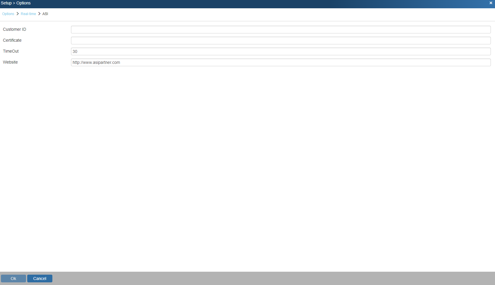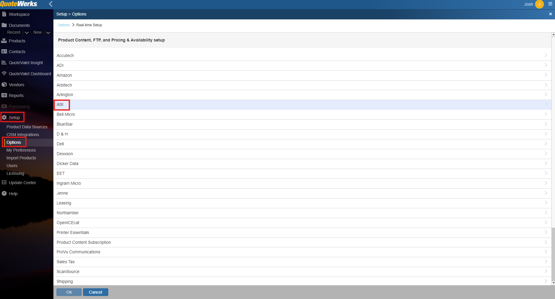 1. To setup ASI Real-time pricing and availability navigate to Setup > Options > Real-time Setup and select ASI.