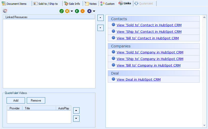 The Auto-Links window creates dynamically generated links from HubSpot CRM and links to specific details from the QuoteWerks quote. These links are automatically created.