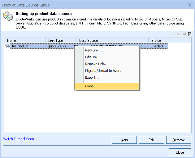Step 1: Go to the Products -> Setup Product Sources menu, then right click on the data source you wish to clone.