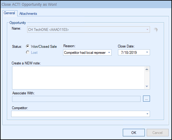 The result will automatically be set to Won/Closed Sale. If you've already previously created a sales opportunity for this quote, QuoteWerks will display it so you can review/modify it.