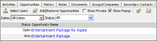 When you're in ACT! for Web, you can find the Sales Opportunity by either choosing the Opportunities option under the Lookup menu or you can open the associated contact and click on the specific Opportunity under the Opportunities tab.