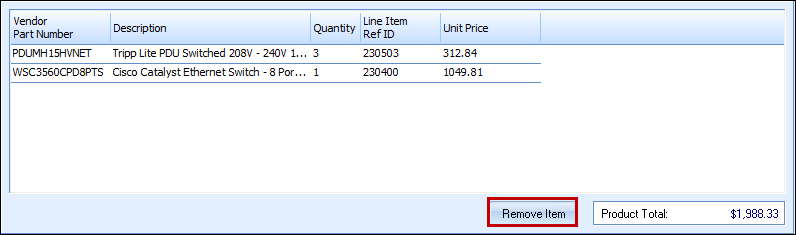 This section of the Online Order Form displays the line items that you have selected to order. You may remove an item from the list by selecting it and clicking the [Remove Item] button.