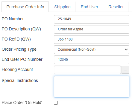 Purchase Order Info Tab