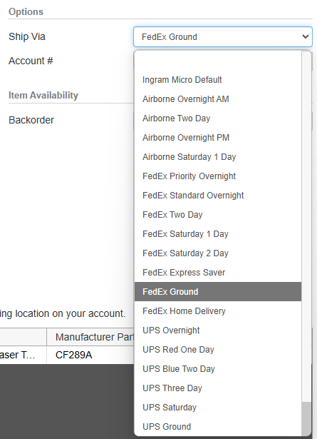 If you would like Ingram Micro to provide your shipping carrier account # to your carrier for shipping rather than charging the shipping to your Ingram Micro account, you can specify your shipping carrier account # here.
