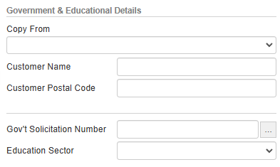 Here you can choose the Ingram Micro pricing market. Typically the market used will be Commercial (Non-Govt), but for government and educational orders, there are options for these. If you choose either Education or Government pricing, the screen will change to display the following additional fields: