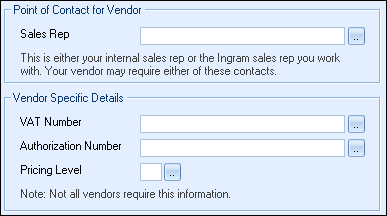 The vendor that you are ordering items from may require Sales Rep contact information. This field will either be your internal sales rep or the Ingram Micro sales rep you work with. You can also predefine a list of sales reps by clicking on the