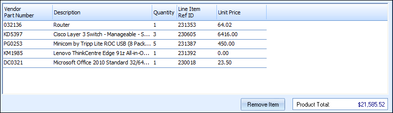 This section of the Online Order Form displays the line items that you have selected to order. You may remove an item from the list by selecting it and clicking the [Remove Item] button.