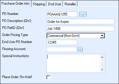 The "PO Description" field allows you to store the description of the purchase order in the QuoteWerks database and is displayed on the Purchasing Window when viewing Purchase Orders. This description is not transmitted to the distributor.