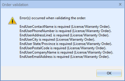 Items that do require End User information also cannot be mixed with items that do not require it – each type of product must be submitted as independent orders or you will receive an error when you attempt to submit the order.