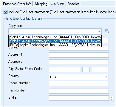 You will then be provided the opportunity to enter the End User Contact Details and resubmit. If all the items selected for ordering come from the same order, the SoldTo/ShipTo/BillTo address from that order will be available for selection when ordering.