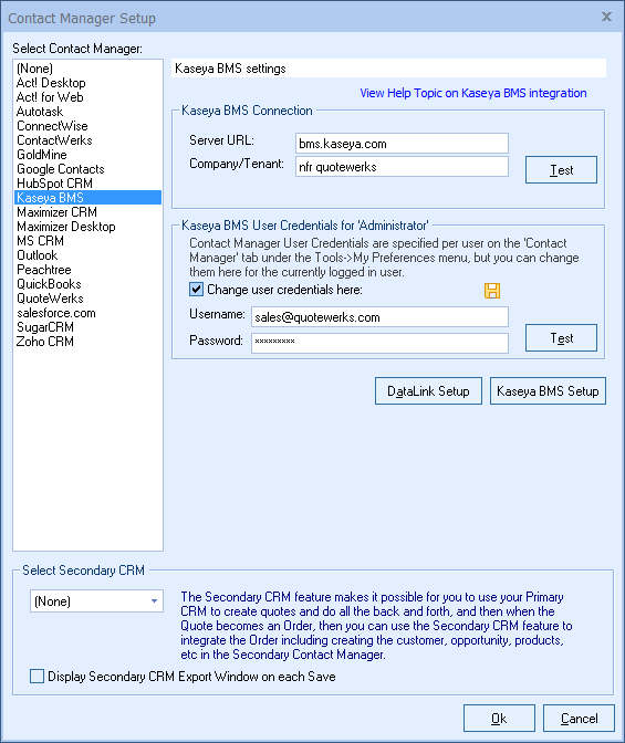 The following steps will take you through the process of configuring QuoteWerks for use with Kaseya BMS.