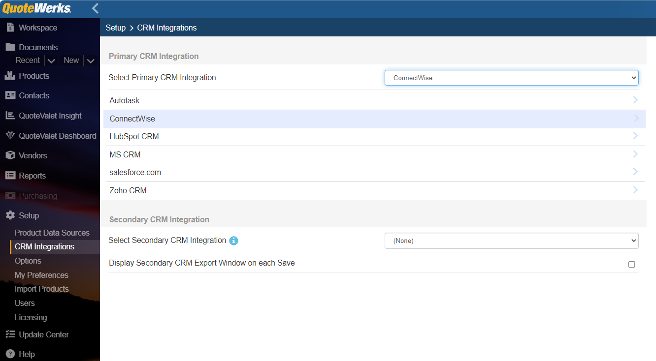 •Use your ConnectWise Products in your QuoteWerks Quotes