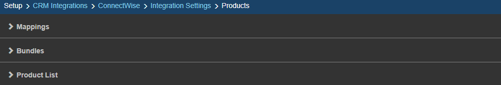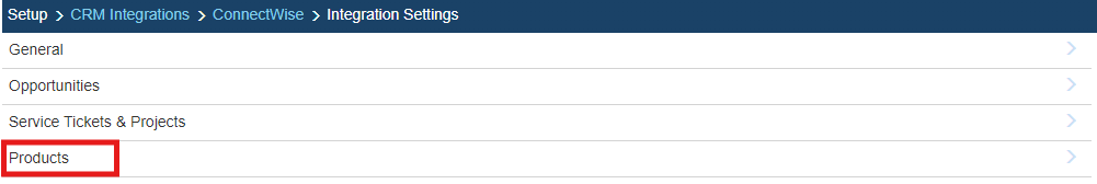Once you arrive at the end, you'll have access to your ConnectWise product list. ConnectWise configures each item as a “Product” by default, with a few exceptions. Because of this, it's necessary to inform the two systems what type of “Products” are being pulled from the ConnectWise database.