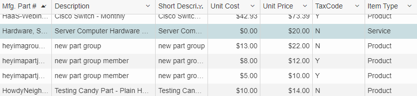 You'll be able to see the Item Type column being populated. In the case of the screen shot above, the Item Type column is being populated with the Item Type of “Product”, as these particular items have had their Product Type set to “Product”. If this item were added to a quote within QuoteWerks, its Item Type would be populated with “Product”, and that is how that item will be saved out to ConnectWise for forecasting.