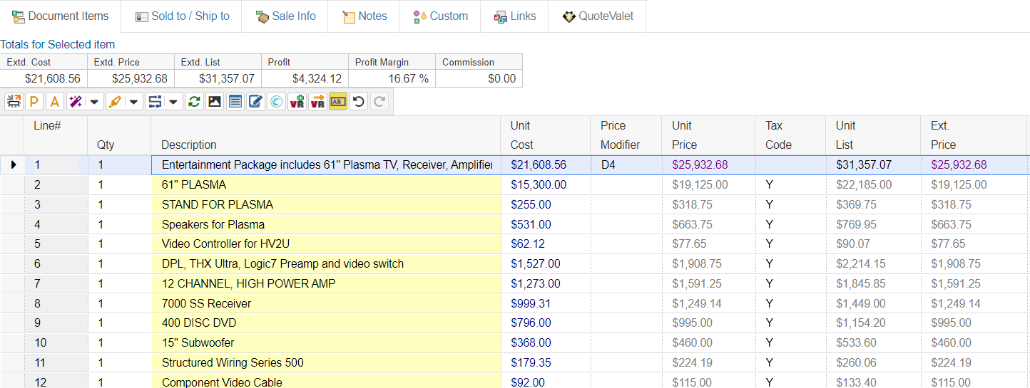 Items in the group will automatically be set to hide the individual prices. This can be adjusted through the line attributes. Groups provide a lot of flexibility for choosing which items to show, which prices to hide, and exactly how you want these items to display on the quote.