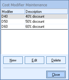 Cost Modifier Maintenance