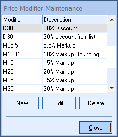 Price Modifier Maintenance
