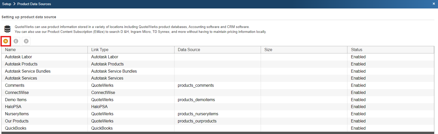 Step 1: Go to the Products -> Setup Product Data Sources menu, then select the New (