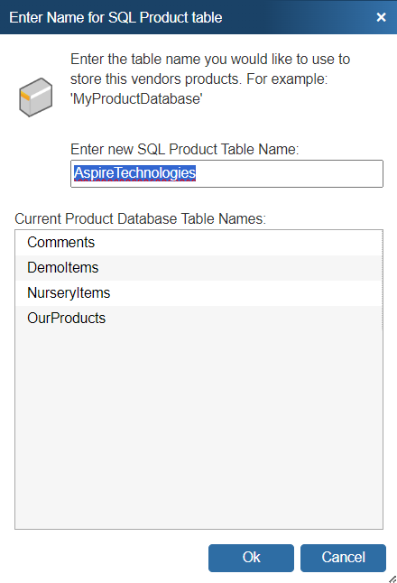 If you are using the Corporate Edition of QuoteWerks, this step will prompt you to “Enter a Name for SQL Product table.” This will be the name of the Vendor’s product list in the QuoteWerks SQL database.