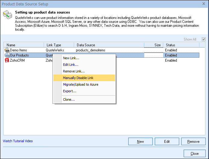 Additionally, there is a right-click option to disable a product source on the Product Source Setup screen as well.