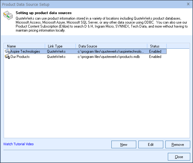 QuoteWerks will auto sort the list of product data sources.