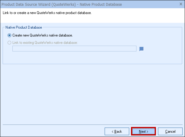 Step 3: By default the “Create new QuoteWerks native database” option will be selected: