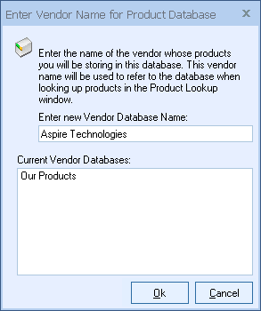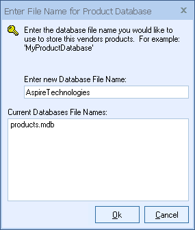 Step 7: Enter the database file name you would like to use to store this vendors products. The database name will be the name of the database file that will be saved to the QuoteWerks directory. Example; vendor name “Aspire Technologies” will become “Aspire Technologies.mdb” in the QuoteWerks directory: