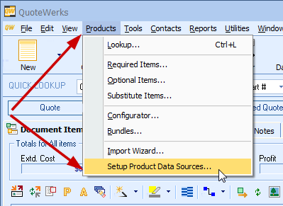 The new product database that was created will now be visible from the Products -> Lookup menu which is where you can add products to this database. This is also where you will select the products that you would like to add to your quote.