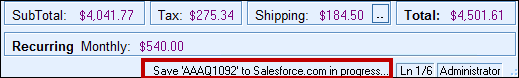 Important: When creating or updating the salesforce.com Opportunity, if you receive any errors, please see Salesforce.com Opportunity Setup for information on setting up the appropriate security rights in salesforce.com that are required to create Opportunities. |