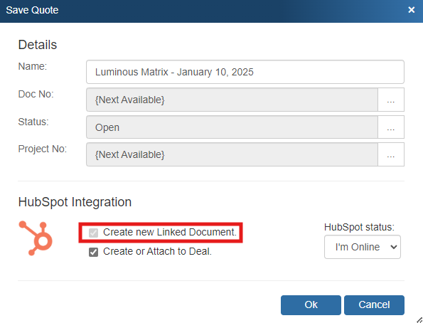 When saving a document, the Create/Update Linked document checkbox will appear on the Save Quote As window.