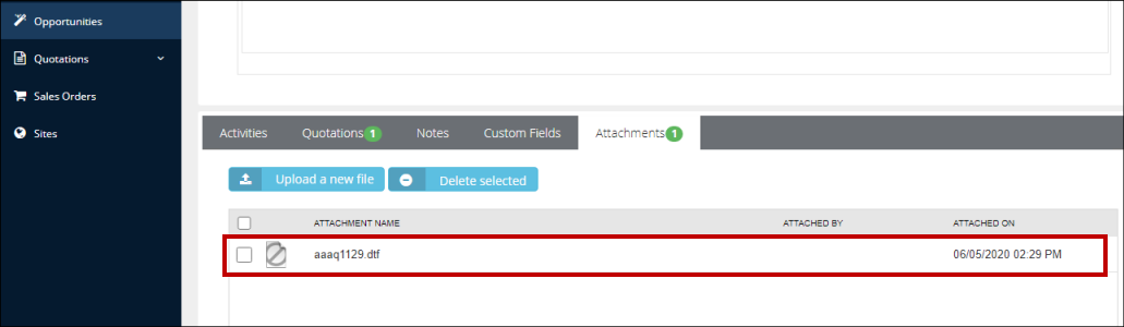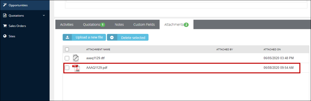 When you e-mail a quote or proposal to your customer, the PDF of the document is automatically attached to the opportunity so other people in your organization who don't have QuoteWerks can open and view quotes. This is especially useful for technicians and service reps.