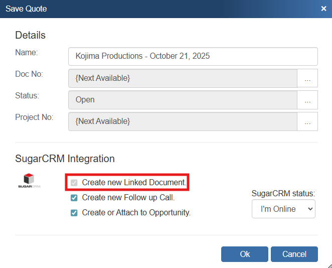 If you check this option, a note attachment record that refers to the document you are saving will be created or updated under the contact's Notes section in SugarCRM.