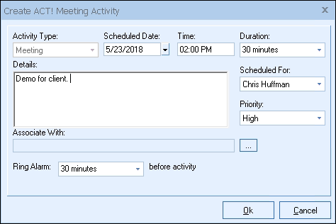 If you already have a meeting scheduled for this quote, QuoteWerks will display it so you can modify it.
