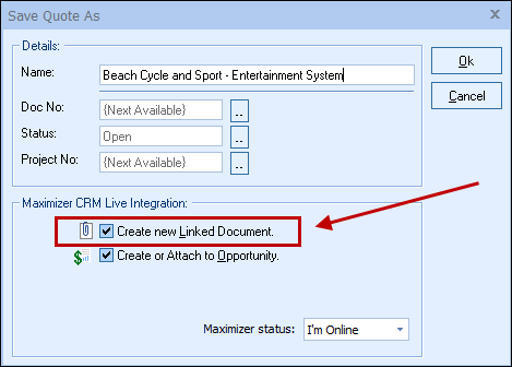 If you check this option, an attachment record that refers to the document you are saving will be created (or updated) under the Maximizer CRM Live Opportunities Documents heading.