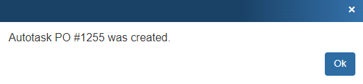 Important: When you re-export a PO to Autotask, this will create a brand new PO in Autotask, with a new PO number. You may need to delete or close the original PO in Autotask for your accounting records to be accurate. |