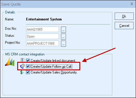 Select this to schedule a call in MS CRM so that MS CRM will remind you when you need to follow up on this quote.