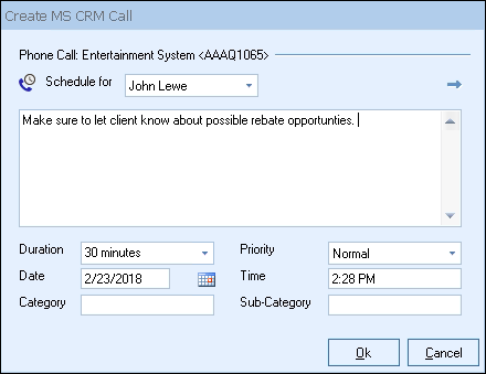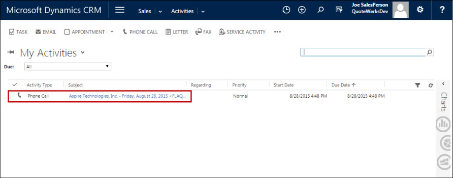 The call will be created under the Activities menu option in MS CRM. You can quickly view this call by clicking on the Links tab in QuoteWerks where the Auto-Link will be available.