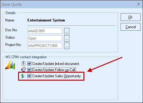 This option will create or update a MS CRM Opportunity under the Sales tab for the contact.