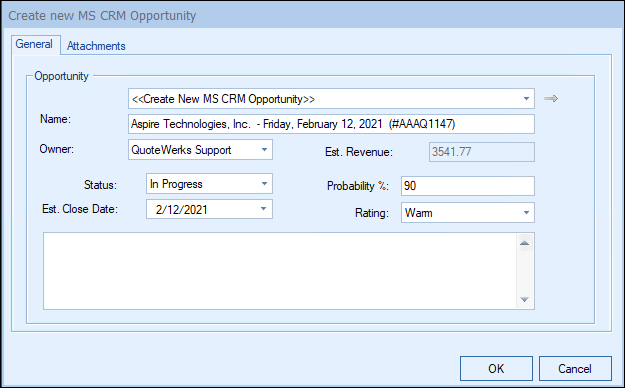 Important: If you have not setup QuoteWerks to create the quote entity in the integration setup for MS CRM, QuoteWerks will be unable to create the write-in items. |