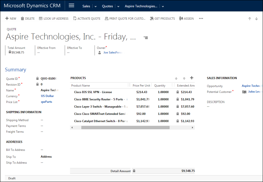 If you already have a sales opportunity for this quote, it will automatically update the existing one to reflect changes you have made to the quote.
