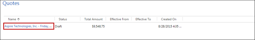 Click on the quote in the opportunity to see a list of the write-in products for this opportunity.