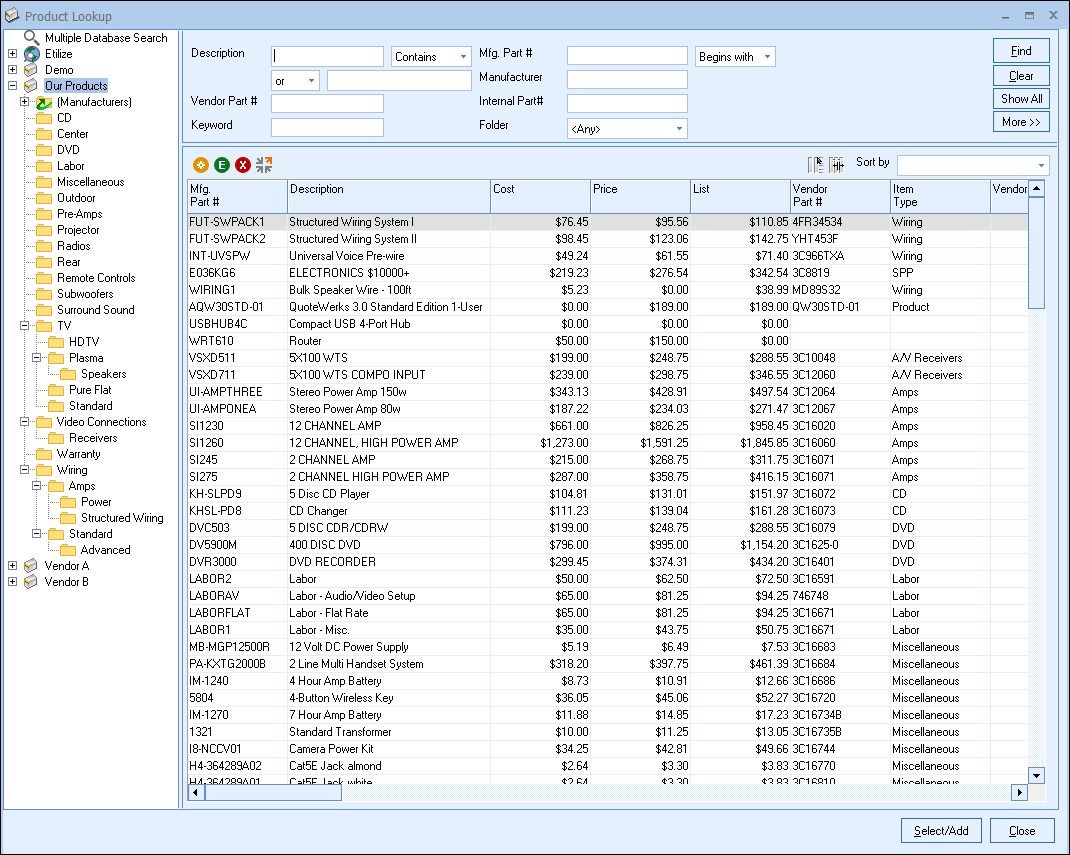 button from the Product Lookup window of a selected Product Database. This option is not available on the Multiple Database Search.